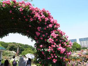 ◇薔薇愛好家にしばしば名を聞きながら、遠いからと敬遠していた京成ばら園吟行の虹の会、家から二時間半かけて楽しみに参加しました。 聞きしに勝るその広大なこと、満開のバラに只圧倒されました。真夏のような日射しには閉口しましたが、香は満喫しました。(操) ◇とにかく今年一番の高温好天気!!初夏の日差しいっぱいの園内には一歩足を踏み入れる前から薔薇の香が一帯に漂っている。(千里) |