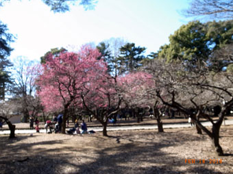 ◇とにかく寒い日でした。日射しはあっても風寒く、必死で歩きました。 大宮公園の第2公園から回ったので梅林での梅まつり、陶器市の賑いにも出会いました。公園を抜け、脇の門から氷川神社にたどりついた時には句会の時間が迫り、ゆっくりと再訪したいと思いつつ社を後にしました。 (千里) ◇冴え返るとはこのことかと思う冷たい風が吹き荒れていた。それにしても大宮公園は広い。 寒紅梅が満開で美しい色で辺りを制していた。本当の春が待ち遠しい。(とめ子) ◇梅はまだ少し早かった。冬木の芽もまだまだふくらむには、日数がかかりそうだった。 (隆雄) ◇冷たい風にもかかわらず、多くの家族連れがお弁当を楽しんでいたのに驚きました。(操) ◇裏手の大宮公園も広くて気持ちのよいところである。昆陽の碑は目黒の甘藷先生の碑より随分大きくて立派。公園のさくらには、さくら百選の木があり、その他にも養生がされた木が多数。手入れの行き届いた公園は気持ちが良い。(淑子) |