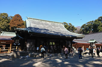 ◇大宮の氷川神社は、前にも一度来たことがあり、永い参道が印象に残っています。晴れているのに吹く風は思いの外冷たかったです。 あちこちに寄せた雪が溶けずに残っているのが見られました。(章子) ◇神社はさすがに立派で参拝の人も多かった。(隆雄) |