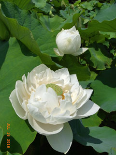◇蓮は午前中ということで早目にやってきた。古代蓮の里は入口から世界のさまざまな蓮がさいていて驚かされる。(淑子) ◇二千年、三千年前に種からの大賀蓮、とても淡いピンク色だった。万葉の時代の乙女の立姿を見るようだった。(隆雄) ◇ボランティアの方が蓮の花の一日目、二日目、三日目とそれぞれ咲き方や萎む時間などを教えてくれました。(瓔子) |
