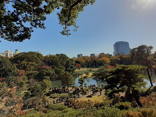 ◇ぽかぽかと暖かい日差しの中、紅葉狩をしていると鳥の声や葉の落ちる音、外国人の声が聞こえてきて、とても心地よい日でした。 日かげに入ると刺すような冷たい空気で、冬だということを思い出させてくれました。足元はどんぐり、見上げれば色とりどりの木々。美しく優しい六義園でした。父と団子を分け合い、食べました。(亜紀) ◇紅葉見物に大勢の人出。しかし池の鴨はのんびりと浮寝中。団子を売る店、甘酒を売る店、草木染の店、それぞれ賑わっていた。(隆雄) |
