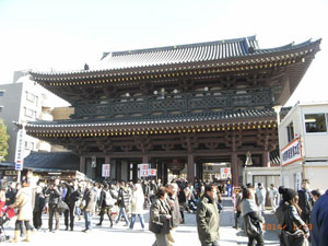 ◇乗り換え乗り換えで川崎大師に着きましたが、それからの参道の長いこと。境内は大変な賑わいでした。寒いという予報にしっかり着ぶくれて出かけましたが、人波にもまれ、北風の寒さを感じなくてありがたかったです。これも神様のご加護かな?(律子) ◇初めての川崎大師。大勢の賑わいに驚く。仲見世は久寿餅屋、達磨屋、せんべい屋などが並び、いかにも門前のおもむき。(宏治) ◇家を出た時は、風が冷たいと思いましたが、予想以上の大師詣の人出に寒さを感じませんでした。(操) |