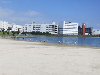 ◇海苔作りの貴重な資料を見学できて有難かった。船や道具類は今までみたことのないものばかりで珍しかった。 季節ごとの漁民の着衣も珍しく、破れたり繕われたりしたものには当時の苦労が偲ばれた。(柳影) ◇展望台がら見ると箱庭のような公園と浜辺だったが、浜辺に行ってみると風が心地よく、白い砂浜が広がって見える。波がほぼないのは残念だが子供達が遊ぶにはよさそうだ。(淑子) |