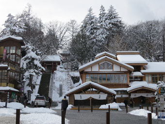 ◇大雪の予報に心配したが、無事草津に到着。まず腹ごしらえに入ったおそば屋さんが意外にもおいしくて、またおかみさんがサービスに出して下さった手造りの漬物の盛り合わせに舌鼓。 歩いて湯畑に。草津温泉の中心にあり、硫黄の匂いと湯けむりに圧倒される。(章子) ◇草津の鼻をつく硫黄の匂いに気分は一気に温泉。(宏治) ◇草津の町にはあちこちに雪が残り、湯けむりが街中に漂っているようで、やはり草津はものすごい。次回は湯めぐりをじっくりやってみたい。(隆雄) |