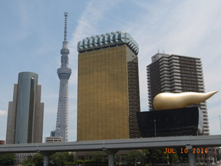 ◇久しぶりの墨堤の涼しい風に吹かれて吾妻橋を渡り、句会場に行きました。(操) ◇会場の墨田区役所の敷地は広く、川風も来、気持ちがよかった。花壇ではアガパンサスが盛りで、花の紫と白が涼やかであった。百日紅がもう咲き出し、今年は季節の訪れが早いようだ。(享子) |