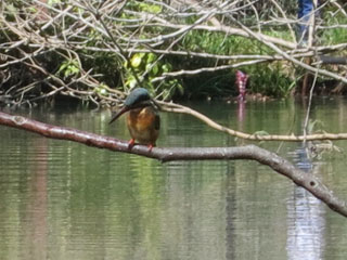 ◇和田堀公園では、青畝先生が句に詠まれた「広き野」のイメージを実感できた。 カワセミが営巣しているとのこと。ちょうど池に飛来したところを写真に撮ることができた。撮影に良い場所らしく、沢山のカメラマンが三脚をたてカワセミを待ち構えていた。「あそこに来たよ」と親切に教えてくれた。(瓔子) |