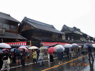 ◇ようやく動いた山車はビニールでおおわれ、準備も曳くのも大変そうだった。(淑子) ◇喜多院には何度か来たことがありますが、お祭の川越は初めてで楽しみにしていましたが、あいにくの雨。 あきらめて特別公開という御典医の旧居を見て、駅に向かって行くと思いがけず、引き出された山車に出会い、幸運にめぐり会いました。(操) |