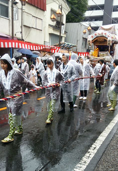 | 雨傘のひしめく路地の神輿かな | 池田宏治 |