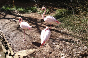 | ◇公園の小動物園で抱き合って暖をとる猿が可愛かった。(隆雄) ◇動物園には、猿や熊、ハイエナがおり、雉や孔雀、フラミンゴといった鳥類も近くで見ることができた。雉は春の季語だと思いながら見ていたが、寒さのせいか、ただじっとしていて句にできなかった。(瓔子) |
