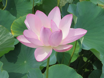 ◇蓮は午前中ということで早目にやってきた。古代蓮の里は入口から世界のさまざまな蓮がさいていて驚かされる。(淑子) ◇二千年、三千年前に種からの大賀蓮、とても淡いピンク色だった。万葉の時代の乙女の立姿を見るようだった。(隆雄) ◇ボランティアの方が蓮の花の一日目、二日目、三日目とそれぞれ咲き方や萎む時間などを教えてくれました。(瓔子) |