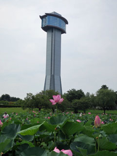 ◆お昼にはレンコンきんぴらの入ったうどんを食べ、売店の生そうめんに心ひかれながら古代蓮会館へ。冷房の中に入ったら炎天に戻る気がしなくなってしまった。(淑子) ◆暑さも忘れ、広い園内を歩き、蓮の花を堪能した。しかし、本当に暑かった。(隆雄) ◆行田は初めてでしたが、駅からバスに乗って来る途中に忍城址公園を通り、今度はここへも来てみたいと思いました。(瓔子) |