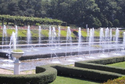 ◇薔薇園には夏ばらがかなり咲いていたが、見て歩くのは暑くて大変。(淑子) ◇花壇のバラは美しい色彩に富み噴水は絶えず高く穂を上げ、木陰の風はとても涼しく、幸せな吟行の一日を感謝しました。(勝子) |