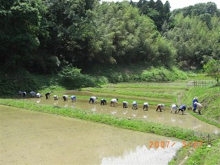 ◇故郷を捨てるというと大袈裟だが、農業を離れて都会に出て来た人達が大勢懐かしそうに植田を囲んでいる風景は発展した?日本の一点景だろう 田植する若者の一団を見た。聞けば大学のサークルで田を借りて米を作っているのだとか。農家の人の指導により一生懸命作業していた。昼の休憩時間に大半がメールに夢中になっていたのは若者らしい光景であった。(柳影) ◇普段見ることのできない田植えや代田掻きを間近で見て、興味深かったです。(なぎさ) ◇代掻き、代田、田植、植田を同時に見ることが出来て、最高の吟行であった。(斉) |