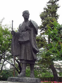 ◇芭蕉翁の奥羽行脚の命がけの出発に比べると、初めての草加にも一時間余りで来られるとは有り難い世の中だと思いました。それだけに芭蕉翁の旅の苦労が偲ばれます。とにかく松並木と芭蕉像が印象的で、折々に訪れてみたい所です。(章子) ◇芭蕉の旅姿像を過ぎ、札場河岸公園に入ると葉桜と躑躅の花で綺麗に整備されていました。(辰也) |