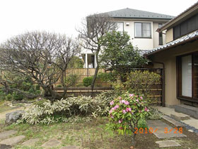 ◇この日は、冬に逆戻りした寒さで幻戯山房(句会場)に入ってほっとした。幻戯山房はさすがに角川源義氏の邸宅で、申し分のない句会場だった。(隆雄) ◇角川庭園は高低差を上手く使った作庭で茶室のあるしっとりとしたものだった。(智) |