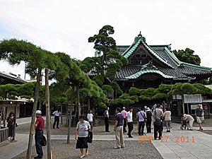 ◇柴又駅の寅さんの像には、いつ来ても心を動かされます。そう言えば、寅さんも句は上手だったとか。(宏治) ◇帝釈天といえば、「寅さん」ブームのころ一度来たことがありました。だんご屋の呼び込みがあったりして賑わっていたことを思い出し、ちょっと淋しい気もしました。門前町の佇まいは今も風情がありました。(律子) ◇金町への電車に乗り合わせた人に「今日は何かあるのですか?えらい混んでますね」と言われ、柴又に降りると帝釈天の宵まつりとかで境内にテントが太刀、猿まわしが来ていました。(操) ◇寅さんの像久しぶりでした。参道は夕方から宵宮まつりとかで大分賑わっていました。境内には猿回し、参道にチンドン屋も出て祭り気分でした。(辰也) |