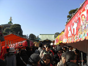 ◇乗り換え乗り換えで川崎大師に着きましたが、それからの参道の長いこと。境内は大変な賑わいでした。寒いという予報にしっかり着ぶくれて出かけましたが、人波にもまれ、北風の寒さを感じなくてありがたかったです。これも神様のご加護かな?(律子) ◇初めての川崎大師。大勢の賑わいに驚く。仲見世は久寿餅屋、達磨屋、せんべい屋などが並び、いかにも門前のおもむき。(宏治) ◇家を出た時は、風が冷たいと思いましたが、予想以上の大師詣の人出に寒さを感じませんでした。(操) |