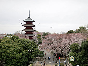 ◇花人に賑わうからか、三月というのに本堂の前に甘茶をふるまっていて、驚きました。花の風に吹かれつづけた後で美味しく飲ませて頂きました(操) ◇日蓮宗の大本山、広い伽藍を一周するだけでくたびれる。日蓮入滅の地、力道山の墓など見どころ多く、折しも花の見ごろを迎えるとあって、境内の大勢の人で賑わう。(宏治) ◇池上本門寺の桜はちょうど見頃だと思いました。五十塔の立つ広い墓苑、また日蓮の説法像のあたりはとくに美しかったです。(章子) |