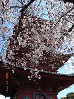 ◇池上本門寺は日蓮上人の入滅の地である。広大な墓苑に名士の墓も多数あり、桜の花も満開であった。(好子) ◇石段を下りたところに日蓮の入滅した場所があり、そこにお線香を上げ、上人が最後に寄りかかって説法したという柱の一部を撫でてきました。ご利益がありそうな気がしました。(章子) ◇お廟所は深閑としているが、空が広いので、明るく清々しい感じがした。(享子) |