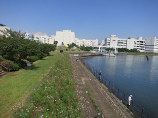 ◆平和島の工場や倉庫に囲まれた人工の浜辺で、秋日和のひととときを楽しみました。海苔を作っていた昔、といってもそれほど遠い昔ではないことに驚きながら思いを馳せました。(瓔子) |