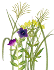 | 百日紅・へびうり・秋の七草・花魁草・露草・なんばんぎせる |