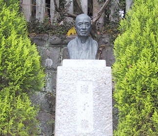 ◇祭日の観光客で賑わう深大寺に深刻な顔をして句帳を広げている一群の人達は虹の会の面々。さぞかし、大勢の人達には不思議な光景に映ったことでしょう。人目を気にせず名句を作るのは大変なことです。(柳影) この虚子像はとても似ているそうです。 |