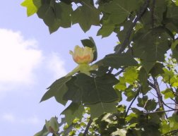 ◇ユリの木の花をはじめて見ました。チューリップのような形、オレンジ色のラインが特徴的な可愛い花です。でも俳句に詠むのは難しい!!(瓔子) |