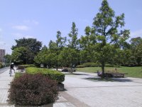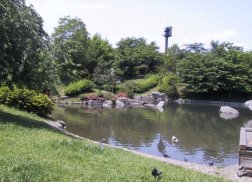 | ◇貯木場だったとは信じられないほど緑陰の多い公園でした。池に入って遊んでいる子等はお玉じゃくしを捕っていると言っていました。(操) ◇池にいっぱい咲いている睡蓮の白さが眩しいほどで、かの有名なモネの絵を鮮明に思い出しました。(勝子) |
