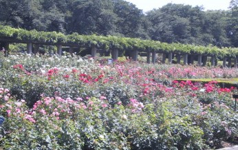 ◇薔薇園には夏ばらがかなり咲いていたが、見て歩くのは暑くて大変。(淑子) ◇花壇のバラは美しい色彩に富み噴水は絶えず高く穂を上げ、木陰の風はとても涼しく、幸せな吟行の一日を感謝しました。(勝子) |