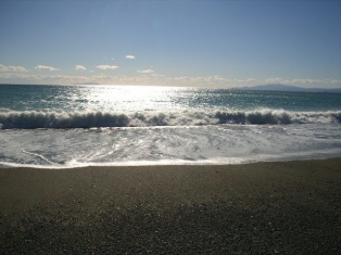 | ◇沖へゆく程、青色が濃くなり、沖は紺碧となっている冬の海が見事だった。幽かに大島が浮かび、浜辺には冬の波が打ち寄せるだけの静かな冬の海だった。(隆雄) ◇車中から素晴らしい富士山の全容が間近に見えた。こゆるぎの浜からは大島が大きく見えた。寒くて晴天だったからだろう。(斉) |
