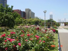 ◇薔薇園の薔薇も盛りで、点在する大樹は緑蔭をなし、海はあくた等少しも浮いていないのにさすが天下の港と思いました。(やす子) ◇薔薇園はようやく満開、今年は芽吹きの頃から観察することが出来てそれだけに楽しかった。(斉) ◇氷川丸の前の沈床公園の薔薇が満開、いい香りがそこら一面に拡がっていた。至福のひとときをありがとう(隆雄) |