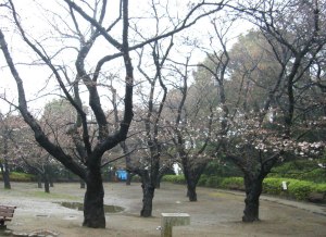 ◇咲き始めた桜が水滴を含んで寒そうでした。明日は水分を充分吸ってわれ先に咲き出しそうです。(智) ◇初花の雨となった哲学堂公園、広くまた高低差のある庭で難しい文字のあふれる所でした。あと一週間あれば、絶好のお花見が出来ることでしょう(彰宏) |