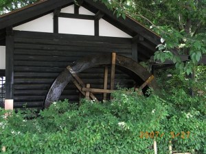 ◇蛙の鳴き声が四方八方から聞こえたが、どこにいるかは判らなかった。その時足元に蛙の飛び込む音がして、少しだけ姿を見ることが出来た。(斉) ◇ゆったり廻る水車に生家の横の竹やぶにあった水車小屋を思い出し、暫しの想い出に浸りました。(ひで子) |