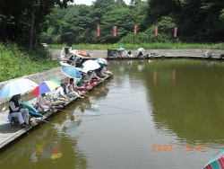 ◇釣堀では太公望が黙々と鮒を釣っており、釣れた鮒は、その場で池へ戻していた。池の隅では、蟇が顔を覗かせて、あらぬ方を眺めていた。(隆雄) |