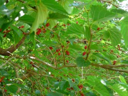 ◇これが桑の実かしらと思う程いっぱいに生っていた桑の実に幼い頃食べて唇を紫に染めて帰った事を思い出しました。(ひで子) ◇桑の実を初めて見て、口に含んでみて「あかとんぼ」の歌の世界にひたったりしました。(なぎさ) |