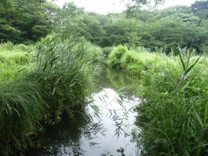 ◇大きな樹林の中の道は風が入らず、暑がりの私には難行苦行でした。日光が余り入らない故か咲いているお花が少なかったように思えました。こんな広い地所を所有していた昔の人はどんな方だったでしょう。(ひで子) ◇蟇の声が腹にしみました。「亀だ」「目高だ」と子供達が大騒ぎをしていました。(隆雄) |