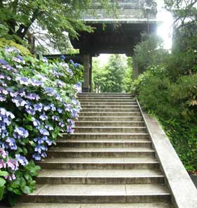 ◇参道の七夕飾りが見事で梅雨空を忘れるほどでした。(享子) ◇駅から山門までの間に七夕竹が林立しびっくりした。ここで何句が作ろうとがんばったが、やはり紫陽花だと思い直して門をくぐった。(隆雄) |