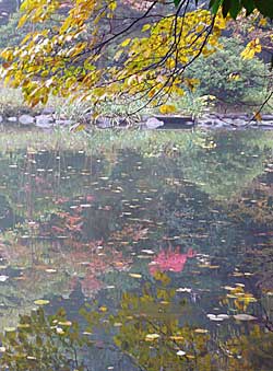 | ◇三四郎池の中島の紅葉が見事でした。(隆雄) ◇三四郎池は、こんなところにこんな自然が残っているのか不思議と思われる位置にある。一周したつもりが、途中であったらしく方向を間違いあやうく迷子になるところだった。(淑子) ◇加賀藩邸の庭園の一部といわれる三四郎池の正式名称は「育徳園心字池」。池の形が「心」という文字をかたどっている事にあるという。小説は何度か読んだ記憶はあるが、実際見たのは初めてで、セピア色にけむる泉水は明治の頃と変わらず、三四郎は恋に迷っていたのであろうか。(一子) ◇三四郎池は思いもよらず朝靄に包まれ紅葉も一層美しく、しばらく佇み句作も忘れて池に映った紅葉や錦鯉を見ていました。(とも子) ◇三四郎池も紅葉には少し早かったが、静かなたたずまいで落ち付きました。(辰也) ◇あいにくの時雨の一日だったが、そのお蔭で大学の中は人が少なく紅葉し始めた三四郎池はすばらしかった。この東京の真ん中にこのような静かな山と池が百年変わらず残されているのは信じられない気がする。(周雄) |