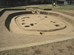◇二千年前の竪穴住居、高床式倉庫、またそこに住んでいた人のお墓や生活の様子、歳勝土遺跡を見ることができてよかったです。(一子) ◇復元された竪穴住居が十基ばかり、中に入るとしばらくは何も見えなかったが、目が慣れてくると中の様子がよくわかり、興味深かった。(隆雄) ◇大塚遺跡は竪穴住居の門口に花など植えられ、気持ちの良い配列になっていた。(智) |