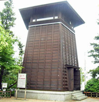 ◇草加宿の望楼が残されており。川の対岸から見ると、葉桜の上に顔をだす望楼が印象的でした。(辰也) ◇望楼には登ると、松並木や葉桜が美しく眺められたそうなのですが、登らずに過ぎてしまって残念でした。(瓔子) |