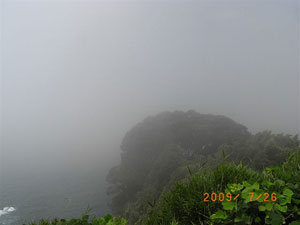 ◇途中靄がかかり、何も見えなくなった後、すっきり晴れた海やヨットハーバーが見えた時は感動しました。(なぎさ) ◇夏の霧が海からどんどん吹きあげて来て、時々江の島の展望台が海霧の中にかくれてしまった。(隆雄) |