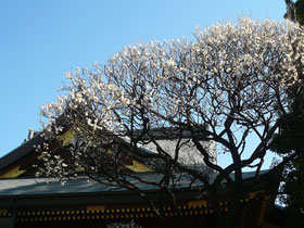 ![]() 本殿と冬至梅 |