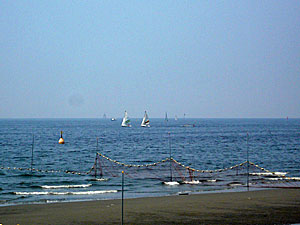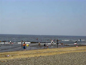 ◇とにかく暑い日だった。 稲毛海浜公園に来たのは初めてだったが、実に広い。そればかりでなく、多分京葉線の駅のあたりから広がっている団地は、全部埋め立てだと思うから本当にすごい広さだ。(周雄) ◇稲毛の浜に設置された温度計は午前10時すぎには35度を指していました。海水浴場は、故郷の浜を思い出しなつかしく、しばし砂の上に腰を下ろしもの思いにふけりました。こういう自然の中の吟行もよいものだと思いました。でも、俳句は難しかったです。(章子) ◇兎に角暑いの一語に尽きる一日で、稲毛海浜公園の海水浴場は一杯の人波でした。(辰也) |