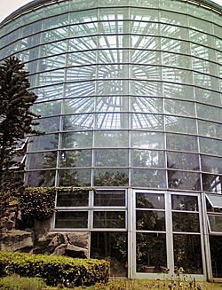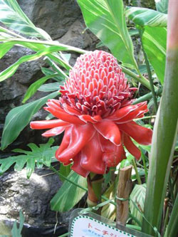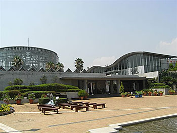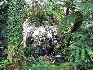 ◇美術館の一番大きなガラス張りの熱帯館の造り滝が大きな音をあげていかにも暑そうな音をあげていました。美術館の中庭の池の睡蓮が咲き、周辺に芙蓉が満開の花を見せていました。(辰也) ◇夏の最中にもかかわらず、花の美術館には多くの花が咲いていた。殊に温室にはめずらしい花が多く楽しかった。(隆雄) ◇温室の中には、作り滝があり、縄の吊橋なども熱帯の雰囲気満点。中庭の睡蓮もきれいでした。(瓔子) |
