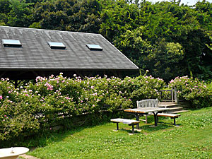 ◇美術館周囲の花園は、きれいではあったが、なにしろ暑くて固まって咲いている花は暑苦しくさえ感じた。(享子) ◇ばらの庭は、ざっと見ただけですが、いろいろな種類の薔薇やクレマチス、あじさいなどが揃っており、ベストシーズンはさぞかし素敵だろうと思います。(瓔子) ◇美術館も早々に冷房のきいた室内に入り、イングリッシュガーデンなど外のお庭はいいかげんになってしまいました。(章子) ◇花の美術館の前庭は色豊富に草花が咲いていました。周辺のバラの小径などのバラは時期が外れていました。秋か春であれば周辺の小径は花で埋っていたでしょう。(辰也) |