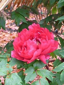 ◇午後、東照宮の牡丹園へ。寒牡丹が見頃であった。少し降る雨にもかえって情緒が増す思いであった。(隆雄) ◇上野のの牡丹園は二回目です。俳人の句の羅列に圧倒されました。一度目は訳分からずじまいで帰りました。今回は数多くの牡丹の句に接し、自分の弱点がとこにあるか少し理解した気が致します。(享子) |