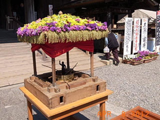◇関東でも古いと云われている弘明寺では、折しも花御堂が置かれ、温かい甘茶の接待がうれしかった。虚子の句「和尚云ふ甘茶貰ひにまた来たか」ではないが、二度も甘茶をいただいた。(隆雄) ◇弘明寺は大変な人出で、本堂にお参りするのに並び、甘茶を濯ぐ人波に並び、そして甘茶をいただくのに並び、と思いがけず時間がかかりました。穏やかな日和で苦にはなりませんでしたが、作句の時間を取られてしまいました。(操) ◇花祭(潅仏会)開いていたが花御堂が綺麗だった。桜は弘明寺で八〜九分咲き、裏山の弘明寺公園は七分咲き位で満開までもうひと息。(辰也) |