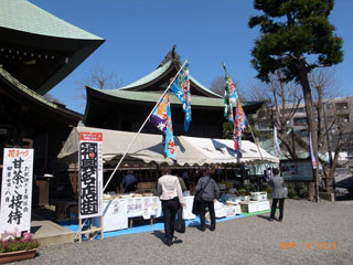 ◇時節柄、東北大震災のチャリティーの売店が出ていた。菓子一品を買ったら、お坊さんが丁寧にお礼を云ってくれた。(隆雄) ◇狭い境内は参拝の人、花見の人で大混雑。(辰也) |