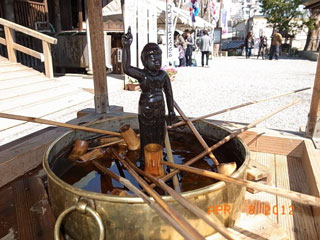 ◇弘明寺の花御堂はこじんまりとしていてとても心なごむものでした。(章子) ◇甘茶仏をあれは何?なんで掛けるの?掛けているのは何?と父親に質問攻めの男の子あり。又、親がもうよいというまで甘茶を掛け続ける子あり、子供達は貴重な体験をしていた。彼等が善男善女に育ってくれることを祈る次第(柳影) ◇甘茶接待をやっていて長い列が出来ていた。1杯頂く。子供の頃の甘茶がもっと美味しかったように思った。(辰也) |