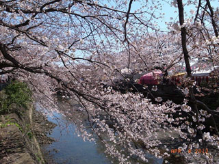 ◇川岸の桜が満開で、歩道は花人にあふれ、道路は規制されておらず、人と車とぶつからんばかりでした。好天に恵まれ、初めての地は楽しかったです。(とめ子) ◇お天気もすばらしく延々と続く大岡川沿いの桜も満開。弘明寺の花祭りの人出には驚いた。(周雄) 句会場の大きなガラス窓からも見事な花が見えた。花に囲まれた楽しい一日となった。(隆雄) |